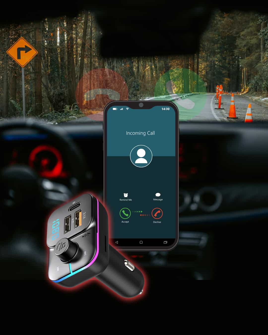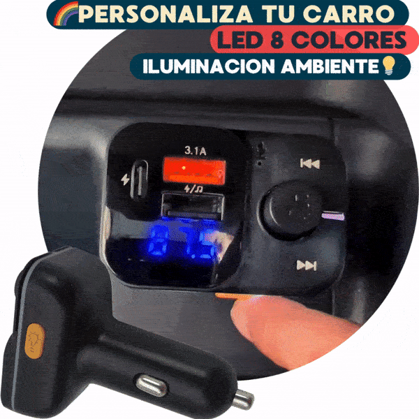 Nuestro transmisor Bluetooth te da todo lo que necesitas para disfrutar de tus viajes. Conéctate y escucha tu música favorita en todas las bocinas de tu coche, carga tus dispositivos con puertos rápidos USB y tipo C, y contesta llamadas sin distracciones. Además, añade un toque de estilo a tu auto con luz ambiental de 7 colores, que puedes personalizar según tu estado de ánimo. Su instalación es súper sencilla y, con envío gratis y pago contraentrega, ¡No hay razón para esperar!
